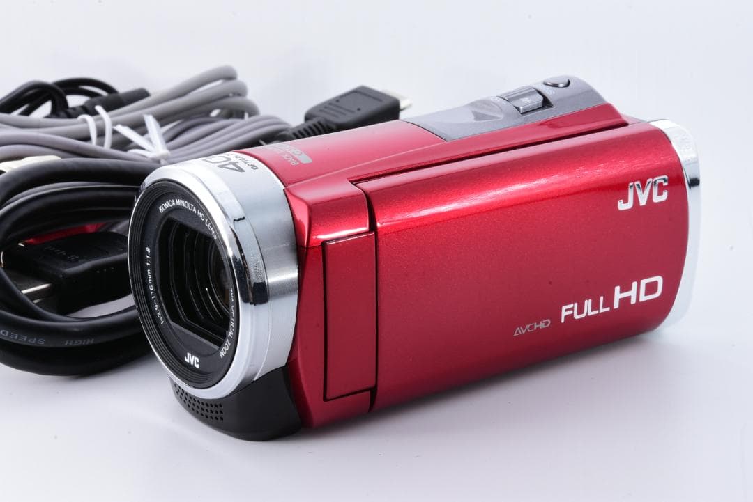 ビクターHDMI対応の赤いビデオカメラ、リモコン付属品全て揃っています。- ブランド: Victor- モデル: GZ-MG380/GZ-MG640- 付属品: リモコン、CD、取扱説明書、三脚、ACアダプター、AVケーブル、USBケーブル- リモコン: あり- 色: レッド- HDMI対応: あり初期化、動作確認済みです。詳しいことはわかりませんので、写真で判断お願いいたします。素人検品の為、細かな汚れや傷などはご了承ください。あくまで中古品になりますのでご了承ください。【商品入手先】公安認可の正規ブランド品買取り販売店です。ご覧頂きありがとうございました☆